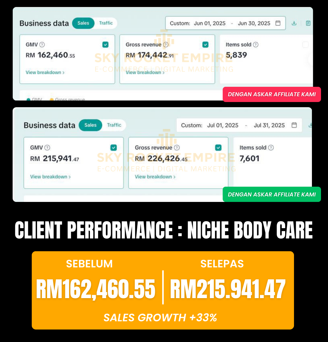 Kami dari Sky Rocket akan bertanggungjawab sepenuhnya akan menggantikan affiliate yang MIA & sample yg burned.