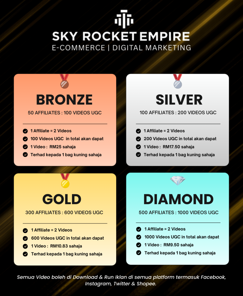 NOTA PENTING: Setiap affiliate akan hasilkan 2 VIDEO untuk anda. Lagi ramai affiliate, lagi ‘gila’ brand anda viral!